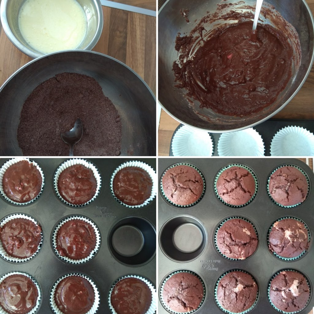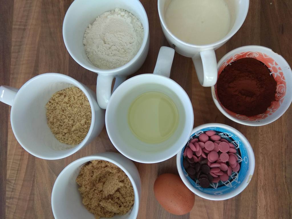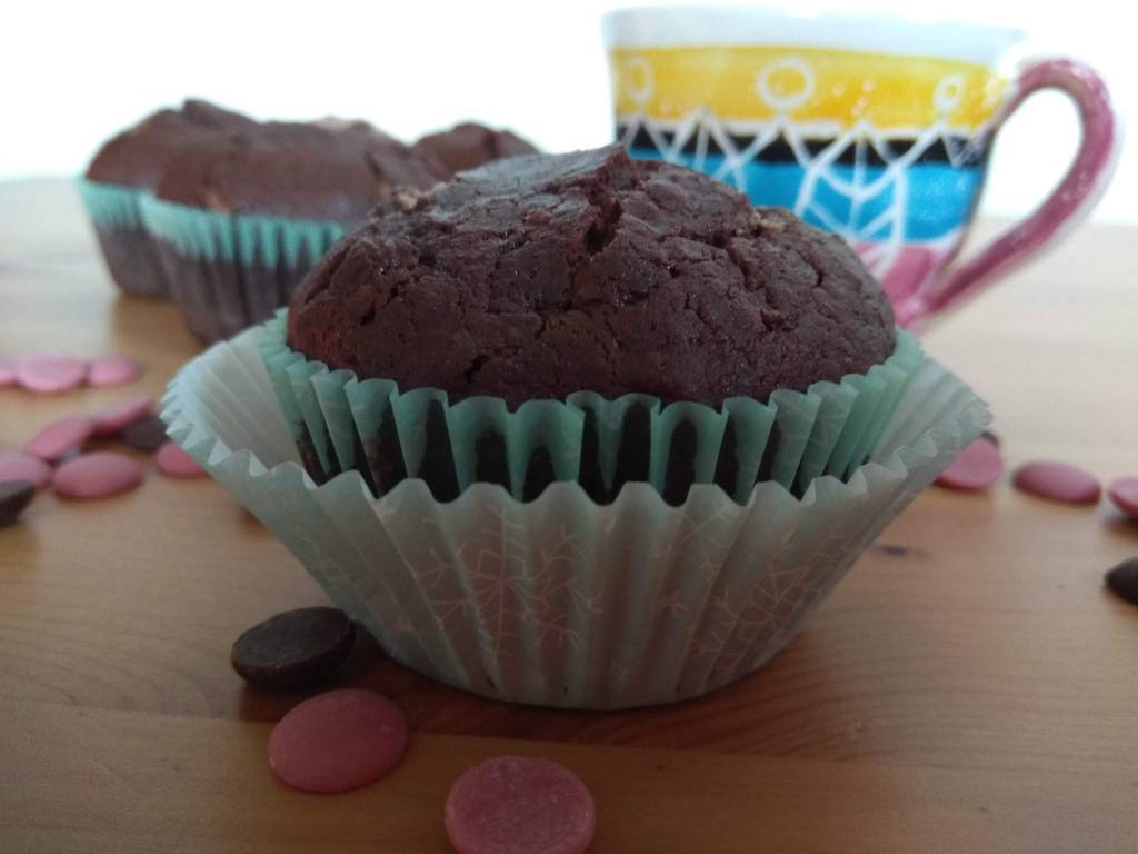 So I came up with this recipe for chocolate chip muffins. I call them triple chocolate because they contain cocoa and then dark chocolate chips and ruby chocolate chips. Ruby chocolate is quite new and it’s really delicious, but don’t worry if you don’t have it, you can simply use white or milk chocolate. Or any kind of chocolate you prefer.