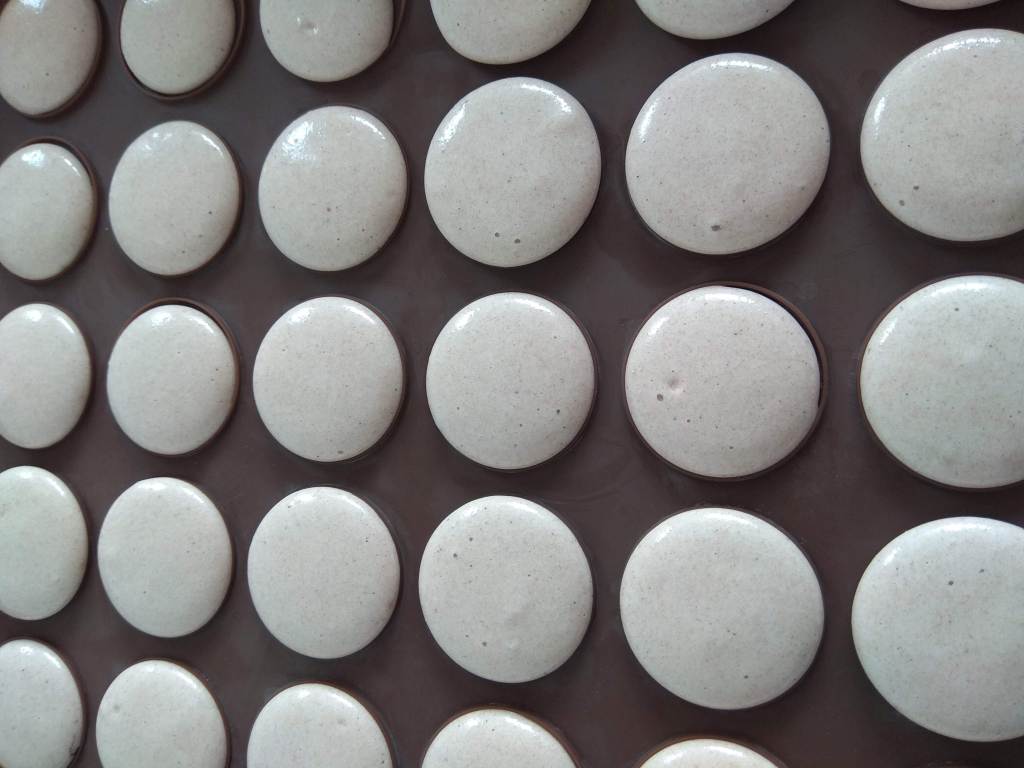 2. After taking the macarons out let them cool down on the tray. When they are warm, they are very fragile. After they cool down, it should be very easy to remove them from the mat.