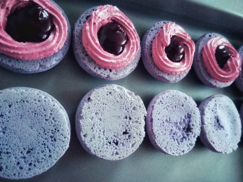 I didn’t share any recipe for a filling because I have a feeling that this article is long enough πŸ™‚ The taste of macarons depends on the filling a lot though. You can have a perfect cookie but if you put a tasteless cream, you kill the result. I know people who say they don’t like macarons, because once they tried one and they didn’t like it. You can flavour the shell if you want, but the options are a bit limited because certain things can affect the structure and behaviour of the batter. So it’s very important for the filling to carry most of the flavour. I like swiss meringue buttercream with fruity flavours, as it’s soft enough and it doesn’t melt easily. I like to combine it with curds (lemon curd, blueberry, etc.) and what works beautifully is any kind of chocolate ganache. But the options are much wider! Maybe next time I’ll write a post about that πŸ™‚