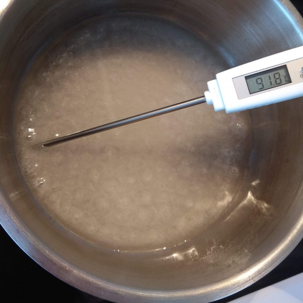 2. Place it over a medium heat. Don’t stir it and have the thermometer ready (you can put it since the beginning or later when it starts bubbling).