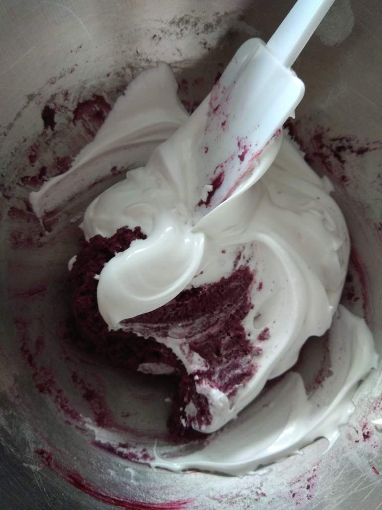 1. Using a spatula, move part of the meringue to the paste and start folding it in. Continue until combined and then add the rest of the meringue.