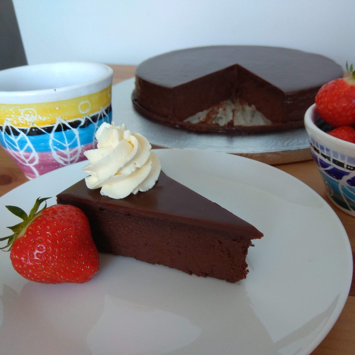 This is the ultimate chocolate cake. It is probably the most chocolate thing besides chocolate itself ๐ The name is French and it means “Black Beast”. The advantage of this cake is that it’s completely flourless. The disadvantage is… oh, wait, there is none ๐