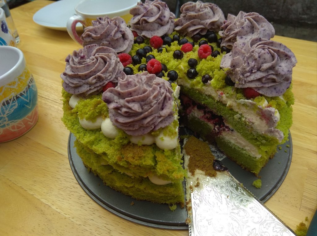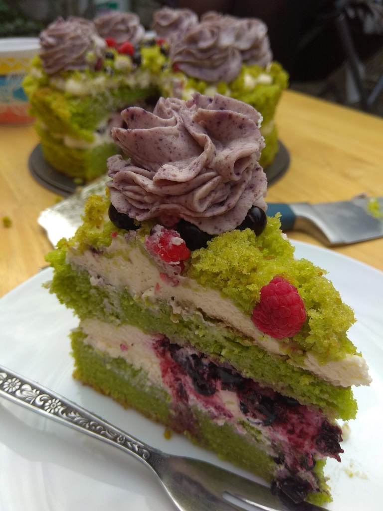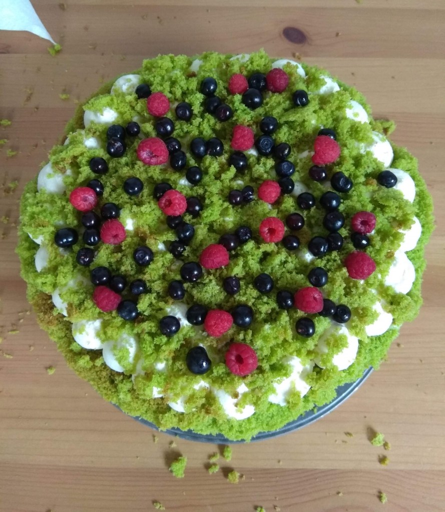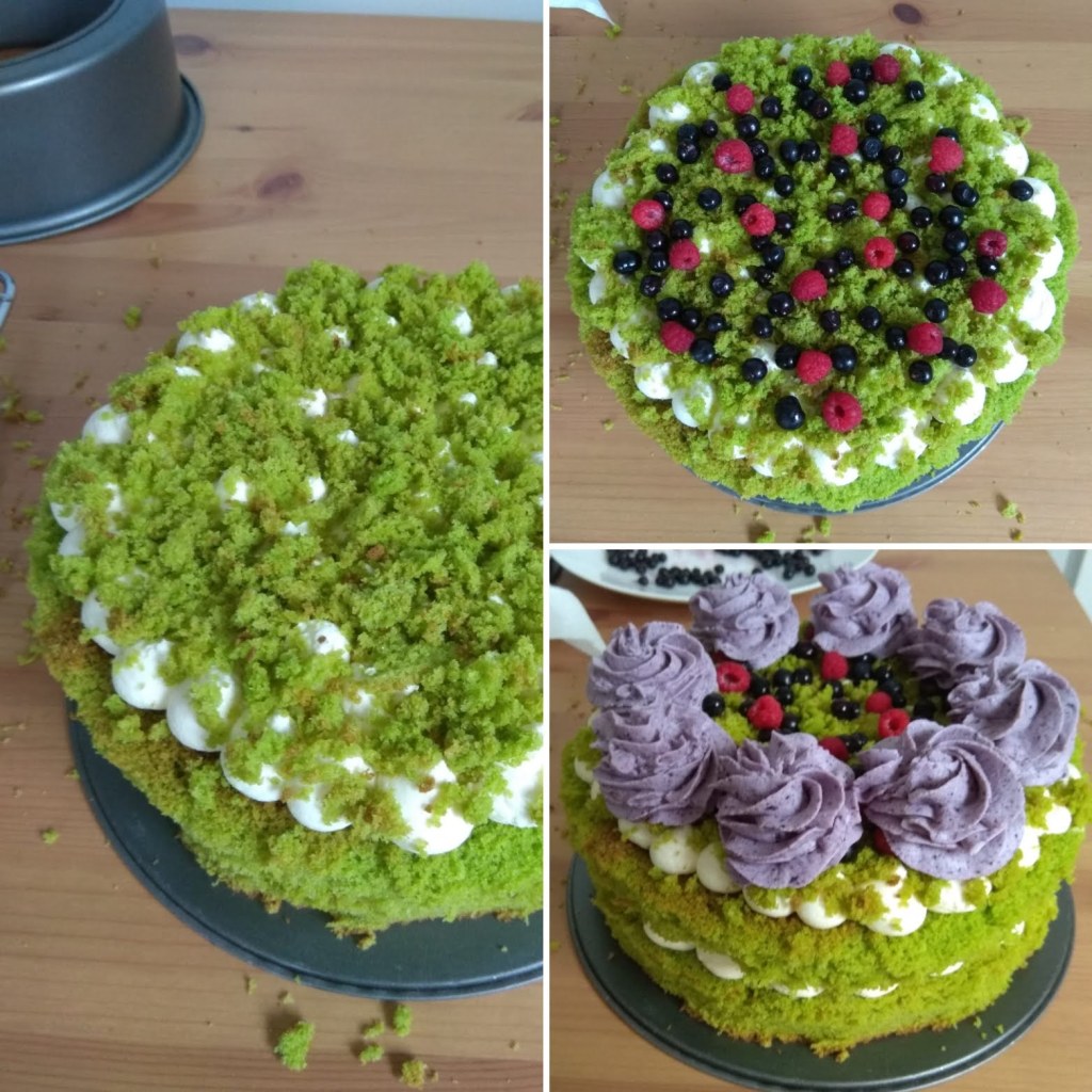 Oh my god, it’s green! ๐ It’s green, fluffy and full of fruit… and spinach. Yes, spinach. I wouldn’t expect spinach to be a part of a cake, but when you think about it, why not? When we can use carrots, beetroot, courgettes, pumpkins… why couldn’t we use spinach? So the cake is called forest moss because it looks like fairies from a forest made it ๐ I was planning it for a while, but I kept postponing it for a perfect moment. I wanted wild berries from the forest. You can of course use any kind of fruit, but if you have a chance, don’t hesitate to use wild blueberries, because the taste and the colour are exceptional ๐